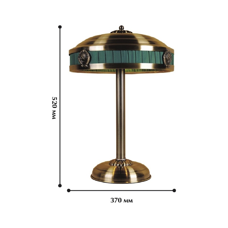 Металлический каркас в цвете античная бронза, абажур декорирован зеленой тканью.
