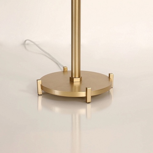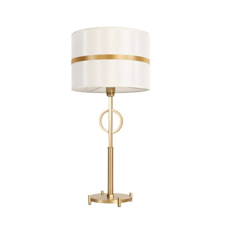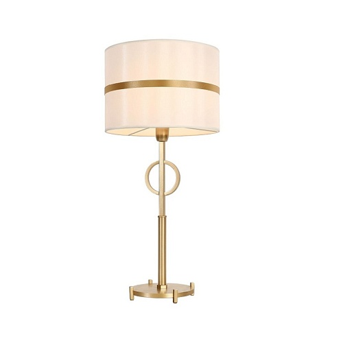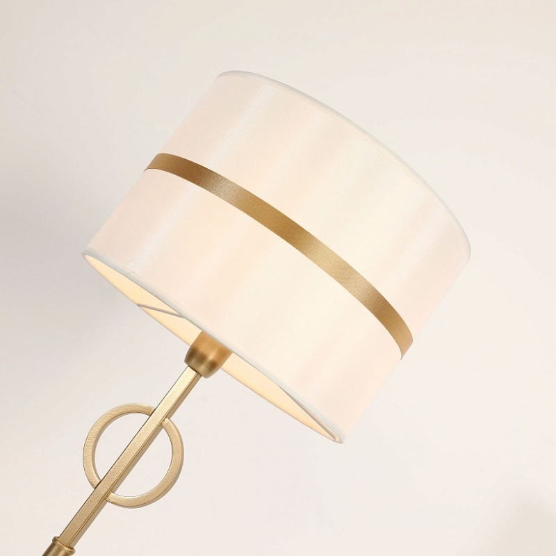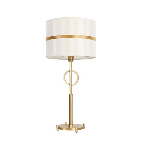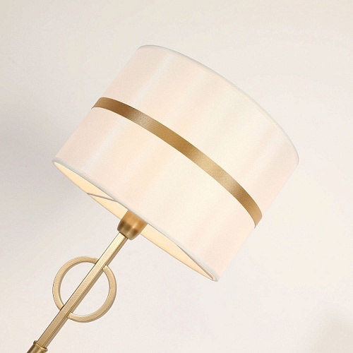 Каркас цвета матовое золото, атласный абажур белого цвета с золотой тесьмой по центру.