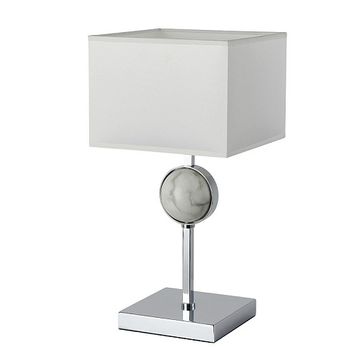 Хромированный металлический каркас , плафон из белой ткани, декор - имитация белого мрамора.
