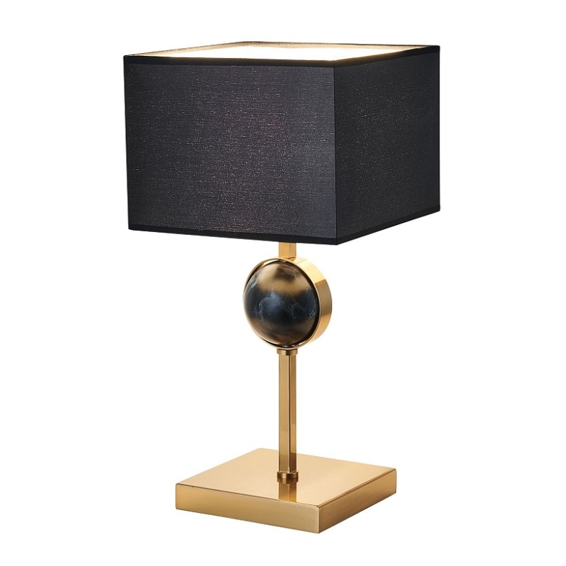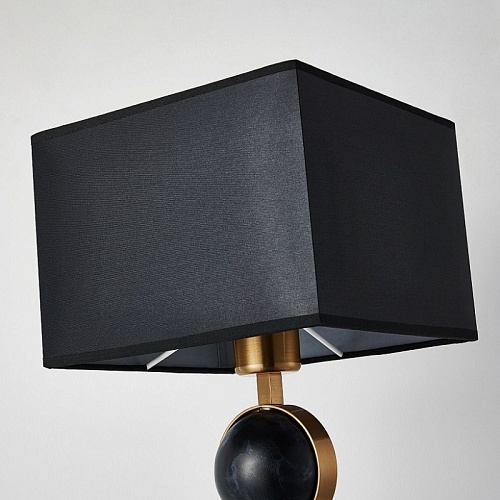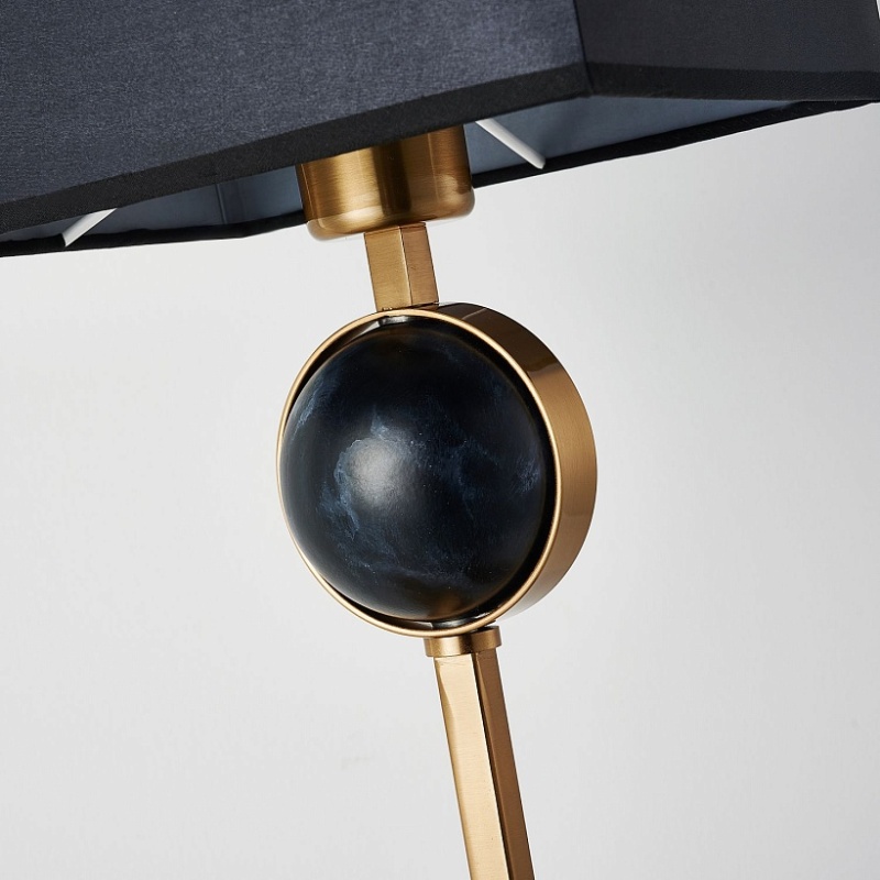 Металлический каркас в цвете античная латунь, плафон из черной ткани, декор - имитация черного мрамора.