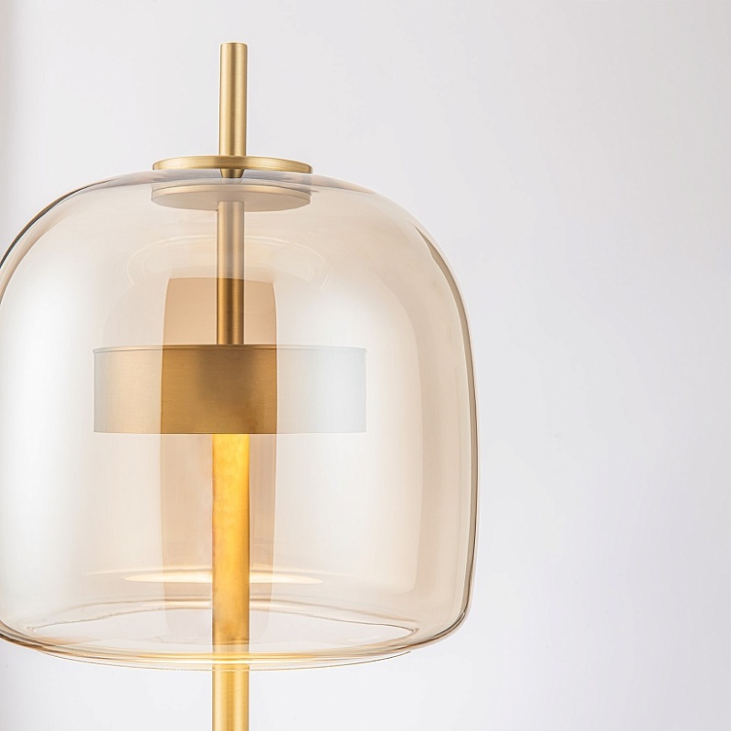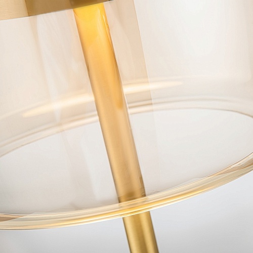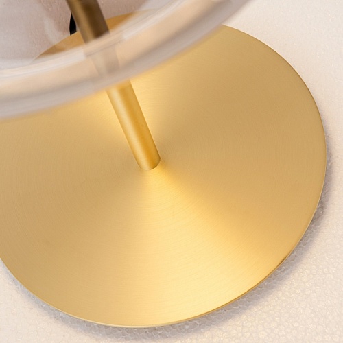 Настольная лампа с каркасом в цвете золото, плафон из янтарного выдувного стекла со встроенным модулем LED.
