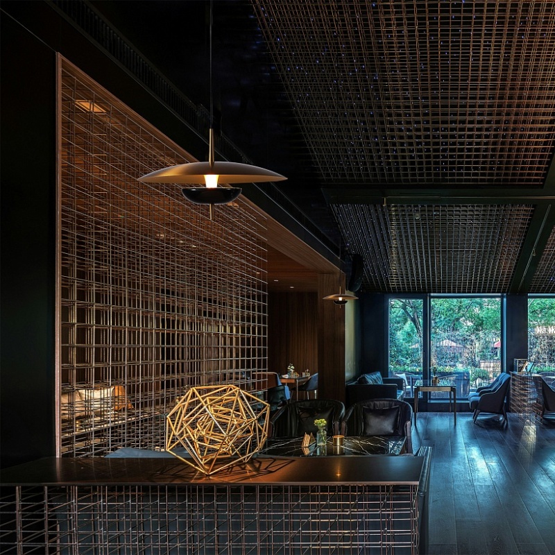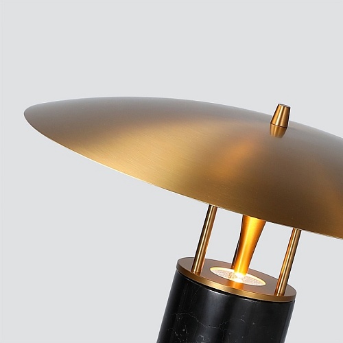 Настольная лампа, каркас и плоский круглый абажур диаметром 40 см в из металла медного цвета, основание из черного мрамора, модуль LED.