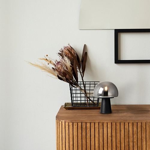 Настольная лампа в черном цвете с дымчато-серым плафоном и цоколем E27.