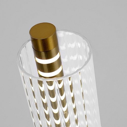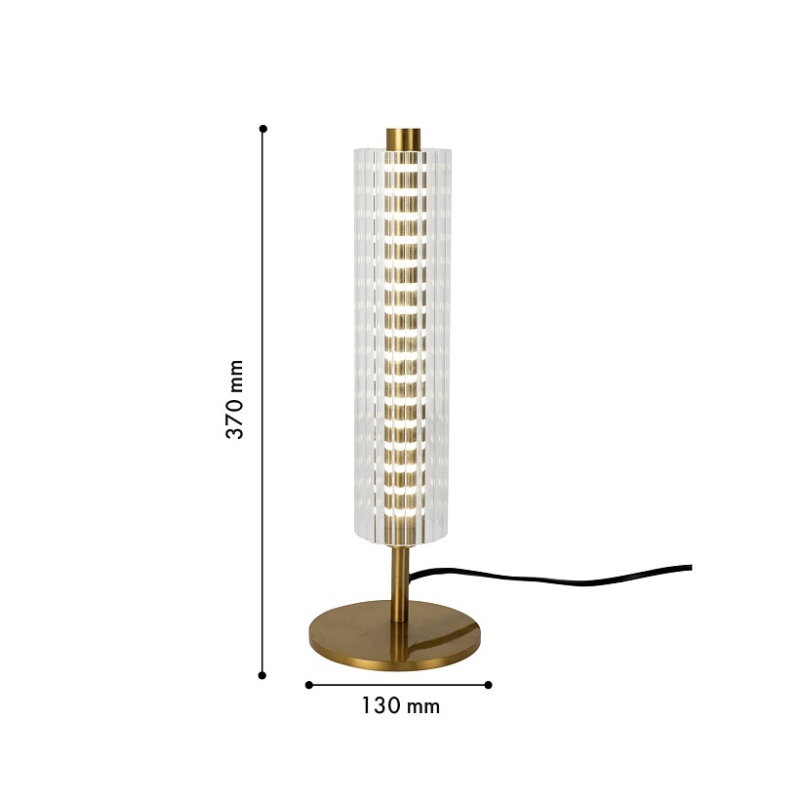 Настольная лампа с металлическим каркасом медного цвета с перфорацией и рифленым плафоном из прозрачного акрила, LED-лента, регулируемая высота.