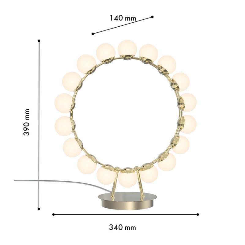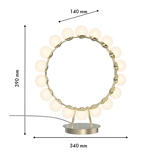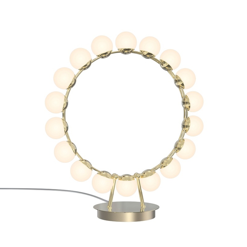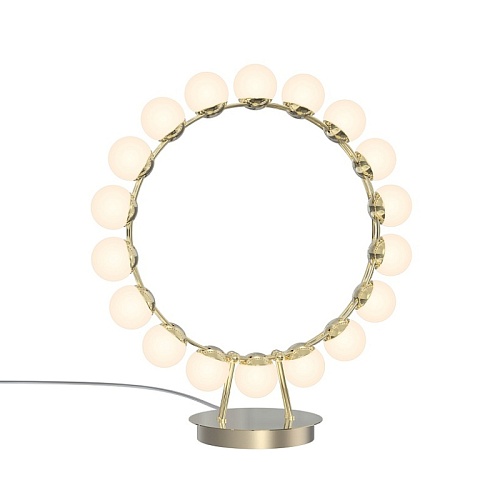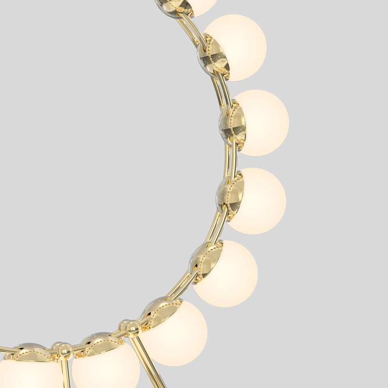 Металлический каркас в цвете латунь, плафоны в форме белых акриловых шариков.