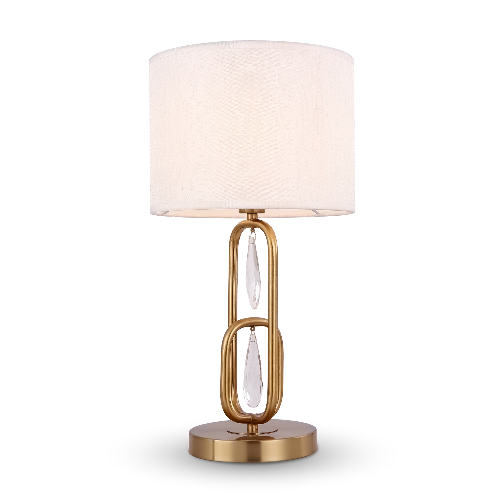 Материал арматуры – нержавеющая сталь, цвет – хром. Материал абажуров – текстиль на ПВХ, цвет – белый. Декор – прозрачное стекло. Акцентные стеклянные кристаллы на рожках со сложной огранкой.