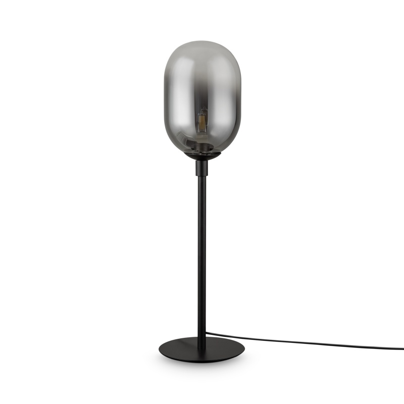 Арматура из металла матового черного цвета. Плафон из стекла с окрасом растяжка. Цвет дымчатый. Модификация — настенные, потолочные и настольные светильники. Источник света — лампа. Цоколь G9.