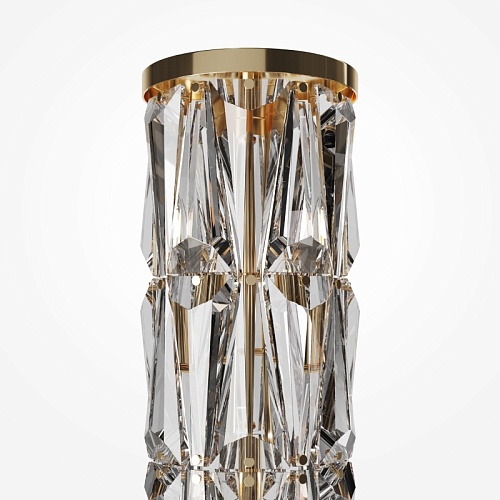 Материал арматуры – металл, оттенки – хром и золото. Декор – массивные крис таллы сложной огранки. Высота подвесных моделей регулируется длиной цепи. Источник света - лампа с цоколем Е14.
