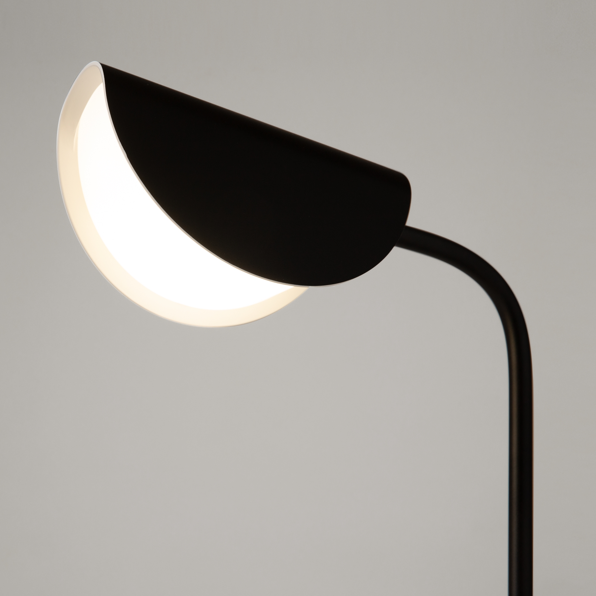 Арматура и плафоны из металла, цвет – черный. Оригинальная форма плафона с плавным контуром. Источники света скрыты под акриловым рассеивателем.