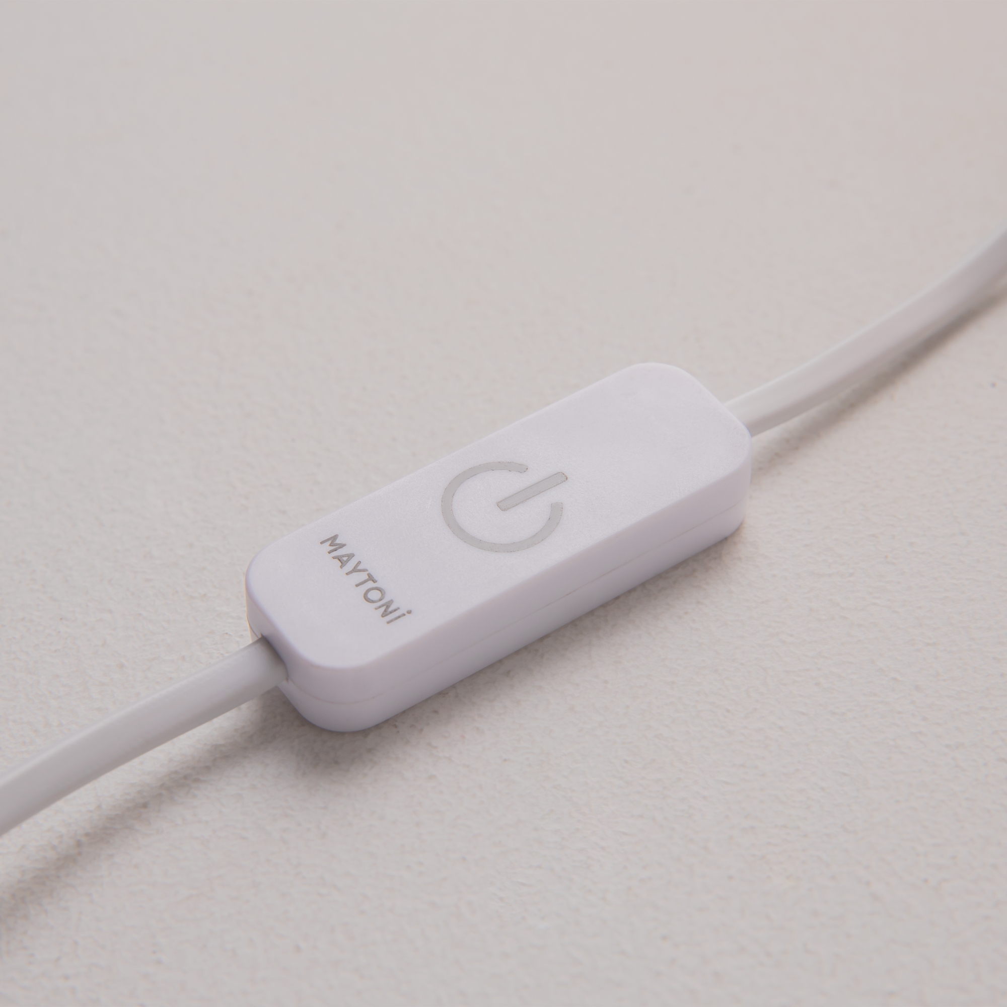 Материал арматуры и плафонов — литое стекло, цвет — градиентный черный, золотой и белый. Фактура поверхностей гладкая. Источник света: LED. Цветовая температура светильника 3000К, угол рассеивания света 120°. На проводе расположен тач-сенсор, при длительном нажатии световой поток меняет свою мощность (диммируется). Отражаясь от стекла, свет стремится вниз, создавая визуальный эффект парения плафона в воздухе.