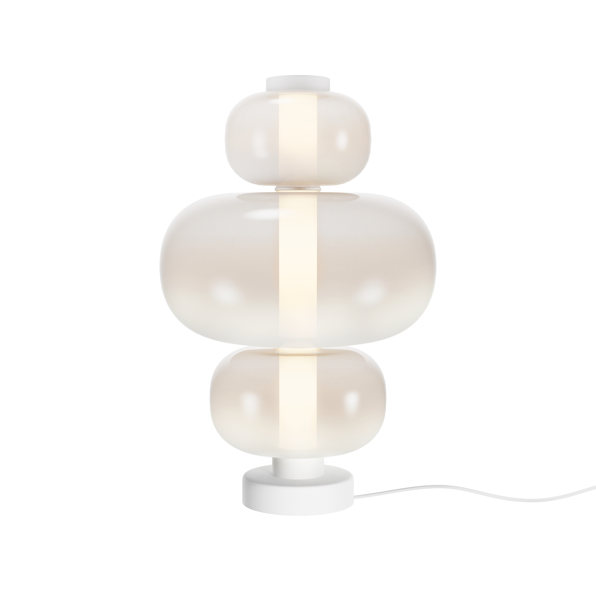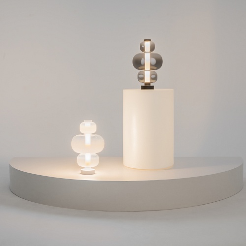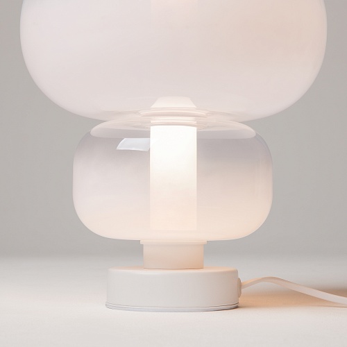 Арматура - металл, цвет - белый, черный. Плафоны окрашены в дымчатый или белый полупрозрачные цвета. В плафон установлен LED-источник света с мощным световым потоком. Цветовая температура — 3000К, угол рассеивания — 120 градусов. Внутренний рассеиватель из полупрозрачного акрила создает мягкое свечение. Предусмотрена функция диммирования: touch-переключатель обеспечивает плавное бесступенчатое управление.