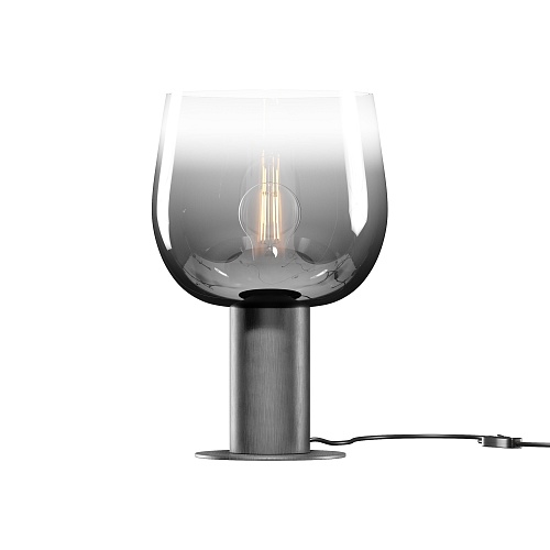 Цветовая гамма: дымчато-серый или насыщенно-янтарный цвет стекла в сочетании с черной или золотой арматурой. В серии есть модели светильников со сменным источником света с цоколем Е27 (каскадная композиция, потолочный и настольные светильники) и LED-источником (одинарные подвесные светильники). Температура свечения LED – 3000 К, угол рассеивания — 120 градусов. Плафоны каскадной композиции плафоны разных размеров и оттенков, установленные на одно основание. Оригинальный декор — актуальный вариант современной классики.