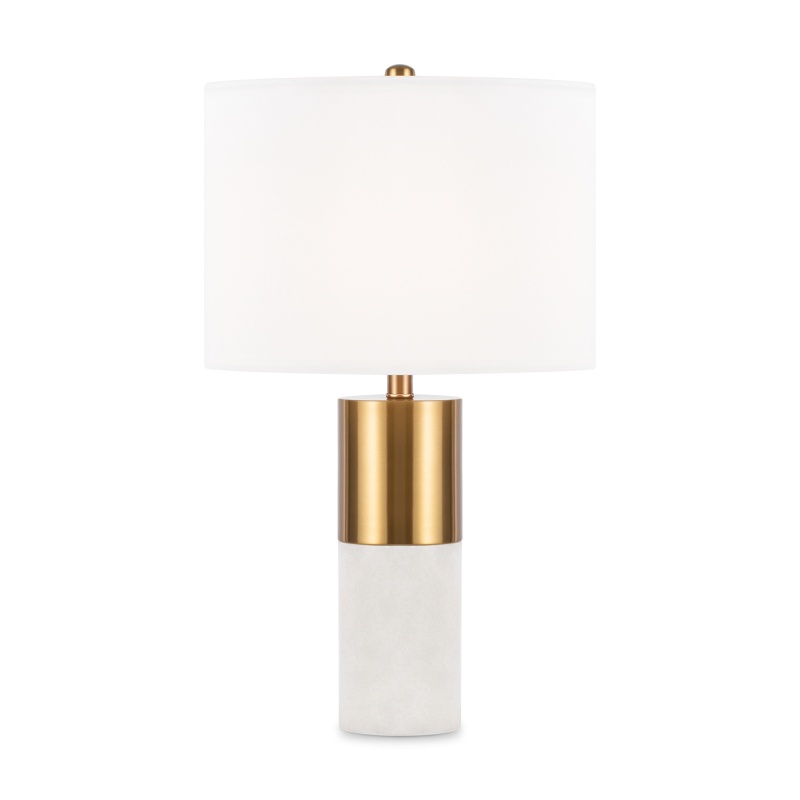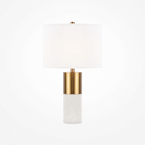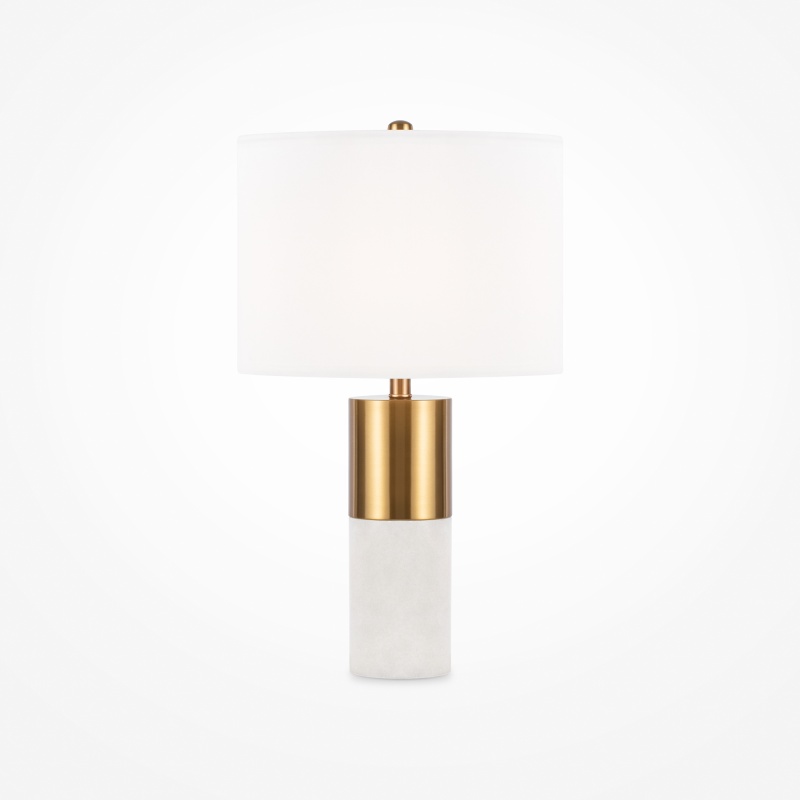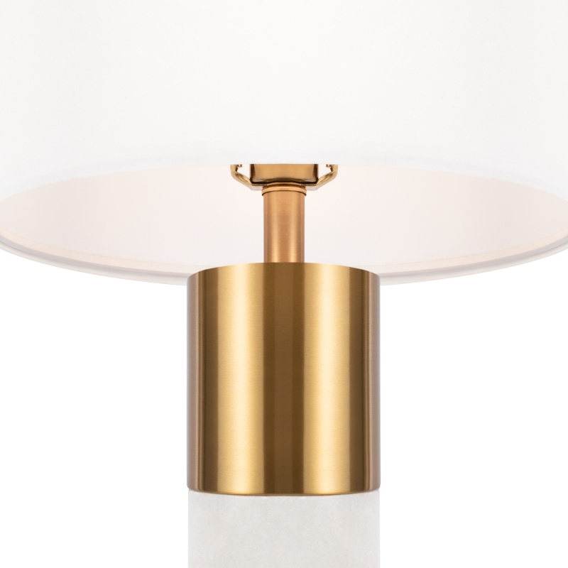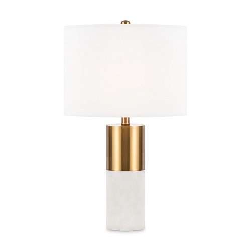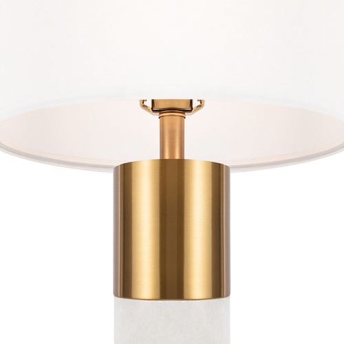 Металлическая арматура, цвет – латунь. Абажур – белый хлопок. Изюминка дизайна – элементы из натурального камня (алебастра). Трендовый микс фактур. Лаконичные формы в американском стиле. Источник света - лампа с цоколем Е14.
