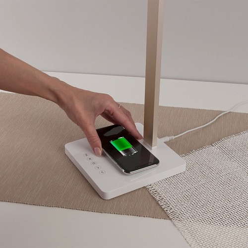 Характеристики Настольная лампа с беспроводной зарядкой для телефона Lori белый/золотой (TL90510)