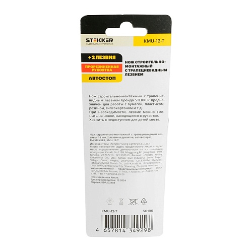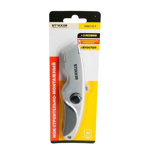 Отзывы о Нож строительно-монтажный с трапециевидным лезвием, 19 мм, 2 лезвия в рукоятке KMU-12-T