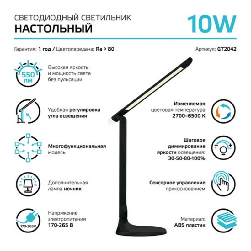 Характеристики Офисная настольная лампа GAUSS GT2042_GAUSS