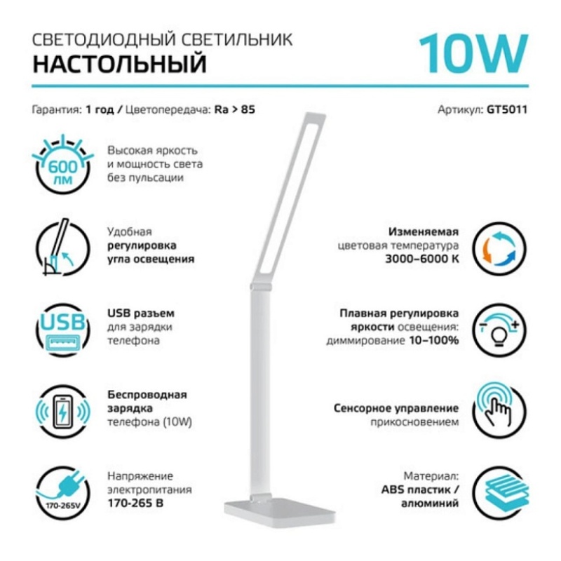 Характеристики Офисная настольная лампа GAUSS GT5011_GAUSS