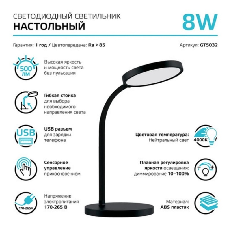 Характеристики Офисная настольная лампа GAUSS GT5032_GAUSS