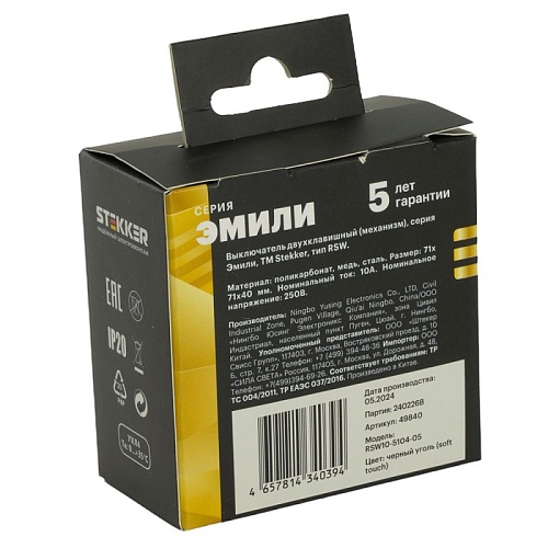 Отзывы о Переключатель перекрестный 2-клавишный (механизм), STEKKER, 250В, 10А, серия Эмили, RSW10-5111-01, белый фарфор, soft touch