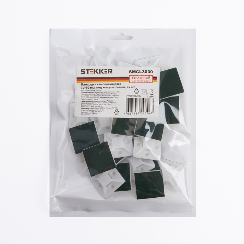 Характеристики Площадка самоклеющаяся STEKKER SMCL3030 30*30 мм под хомуты белый (25шт в упак)
