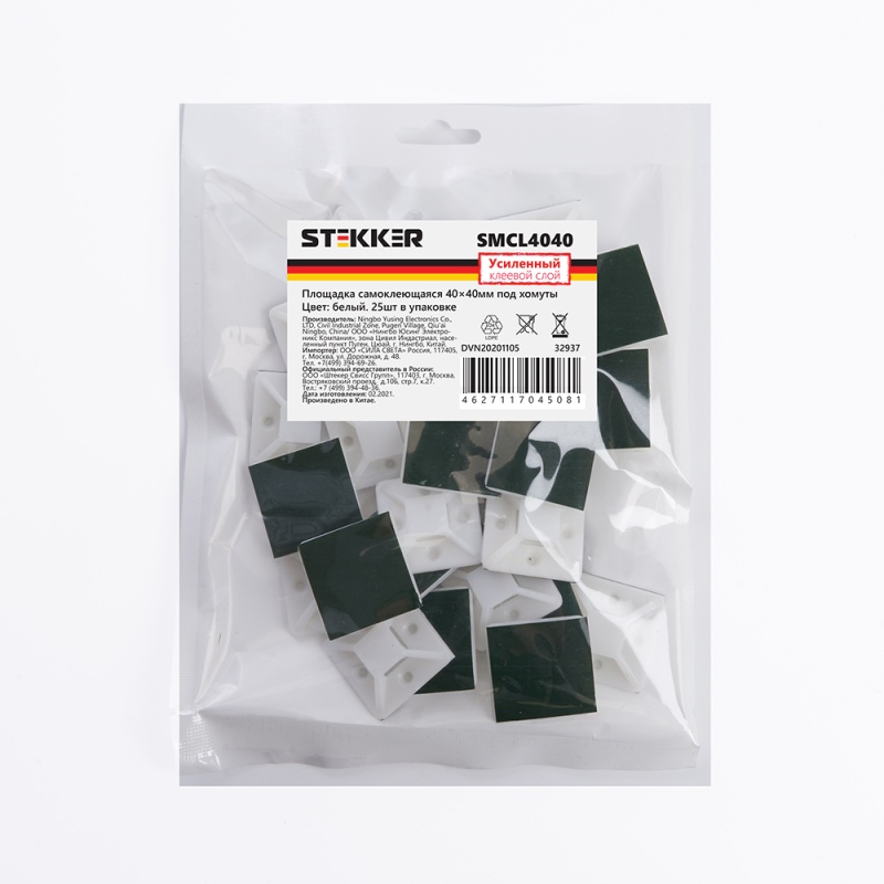 Характеристики Площадка самоклеющаяся STEKKER SMCL4040 40*40 мм под хомуты белый (25шт в упак)