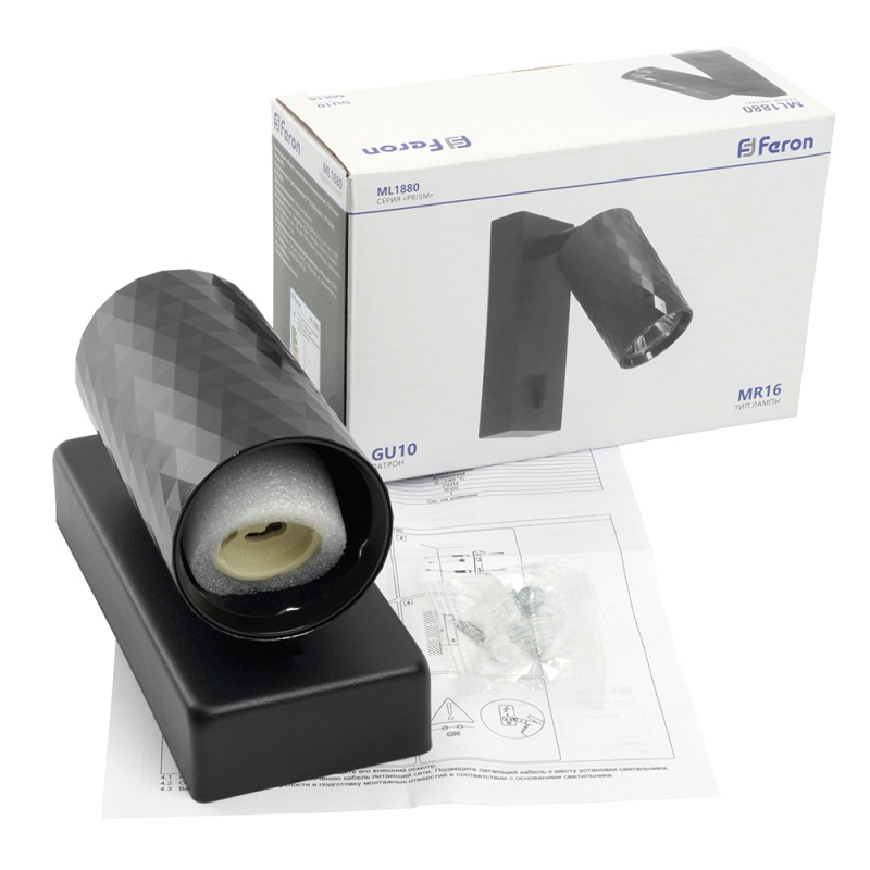 Характеристики Светильник Feron ML1880 PRISM 35W, 230V, GU10, чёрный