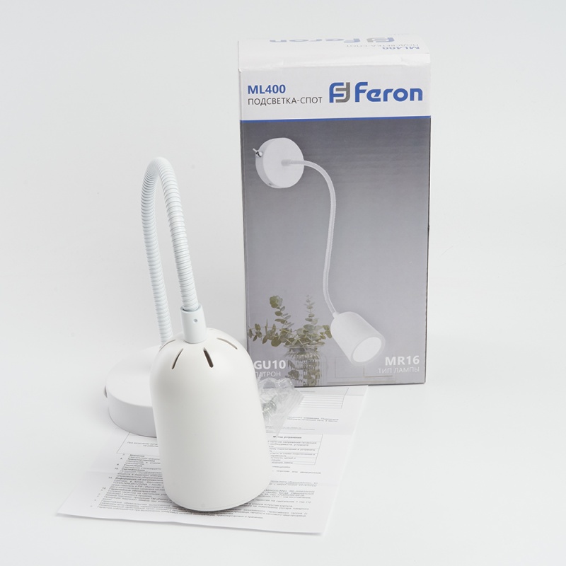 Характеристики ML400 настенный под лампу с выключателем MR16/GU10, 35W, белый