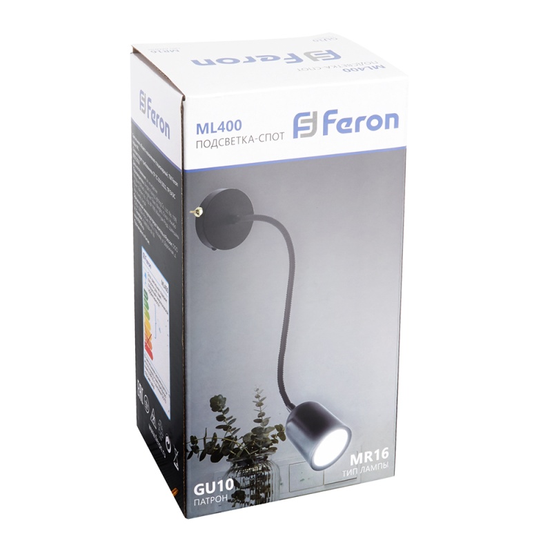 Характеристики ML400 настенный под лампу с выключателем MR16/GU10, 35W, черный