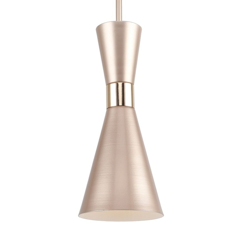 Металлический каркас золотого цвета с золотым основанием, золотой плафон, золотой декоративный элемент, регулируемая высота.