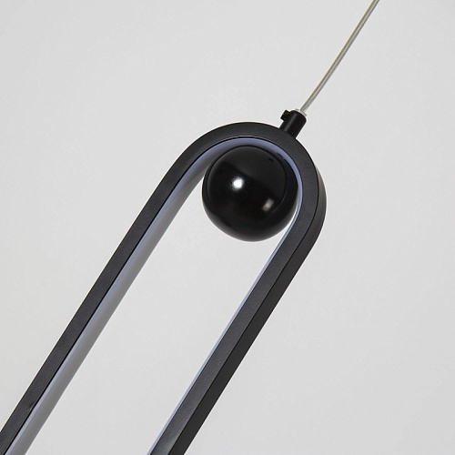 Металлический каркас матового черного цвета, глянцевое черное покрытие декоративного шара, встроенная LED лента, регулируемая высота.