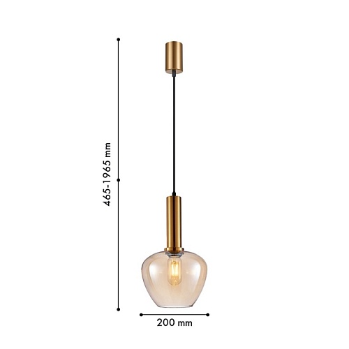 Металлический каркас в цвете латунь, выдувной плафон янтарного цвета, цоколь Е27,сменная лампа, регулируемая высота.