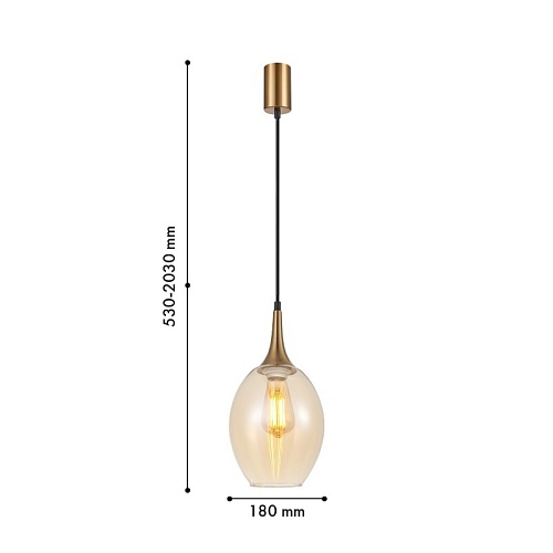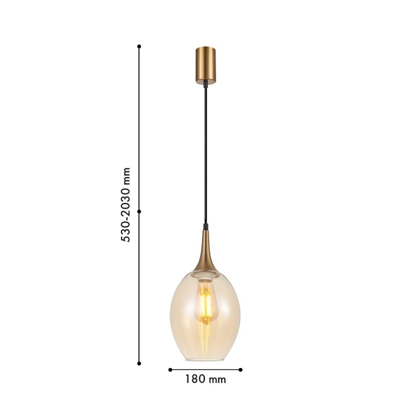 Металлический каркас в цвете латунь, выдувной плафон янтарного цвета, цоколь Е27,сменная лампа, регулируемая высота.