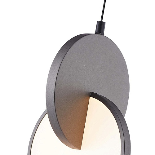 Каркас из металла черного матового цвета с плафоном из двух сцепленных между собой дисков: цветного (серый) и светящегося, регулируемая высота, встроенный LED-модуль.