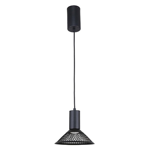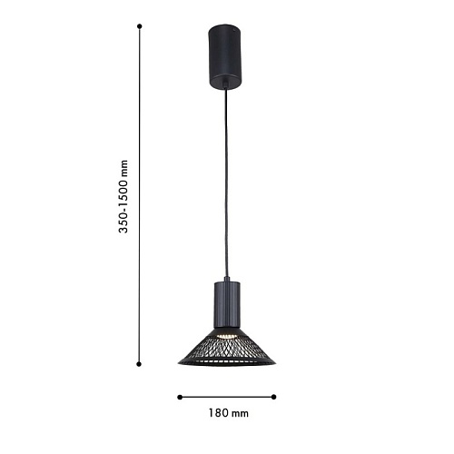 Каркас из металла черного матового цвета, плафон из металлической сетки, регулируемая высота, LED-модуль.
