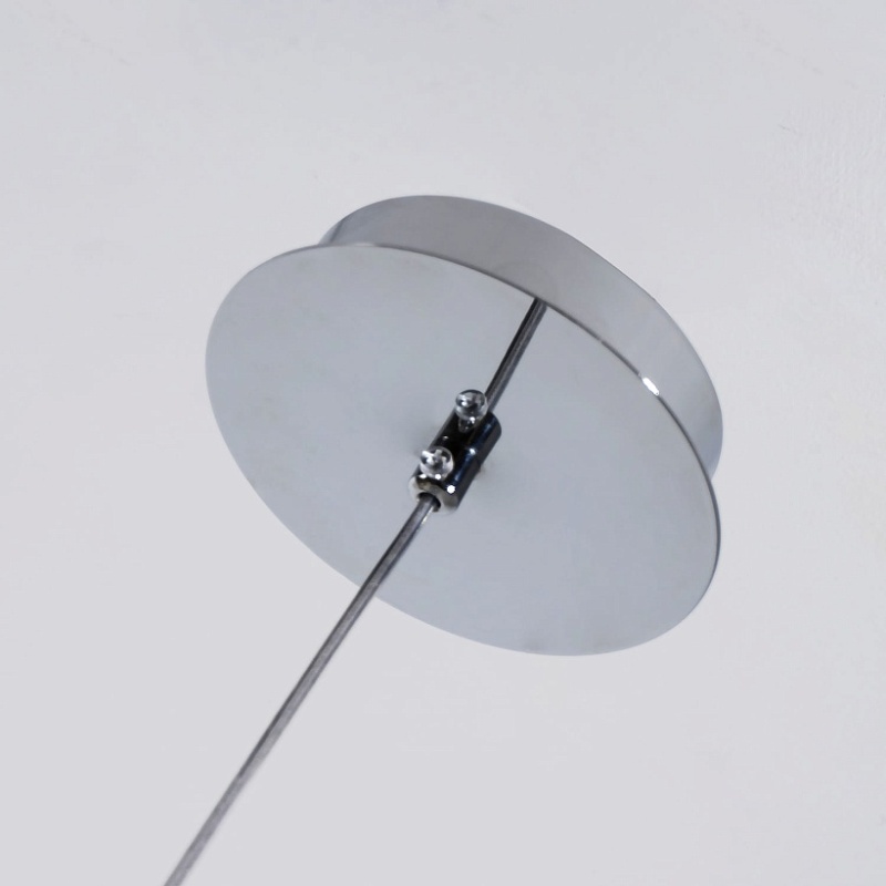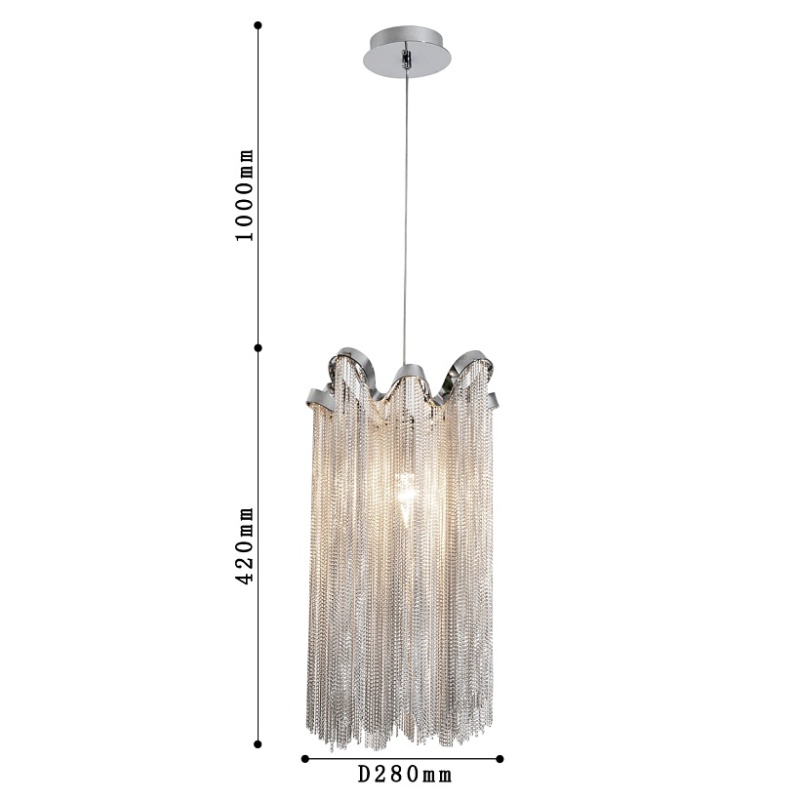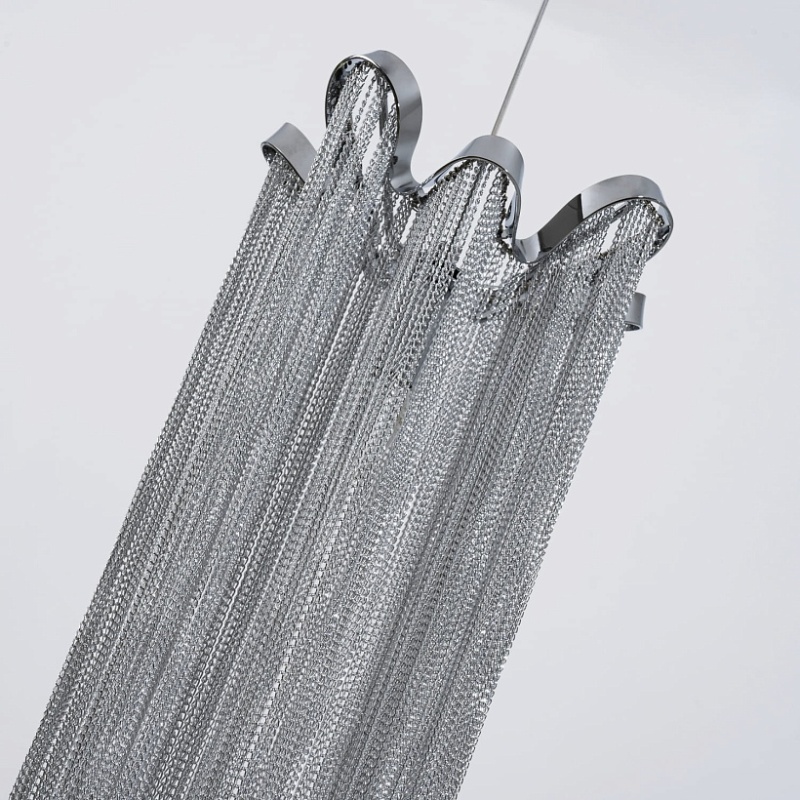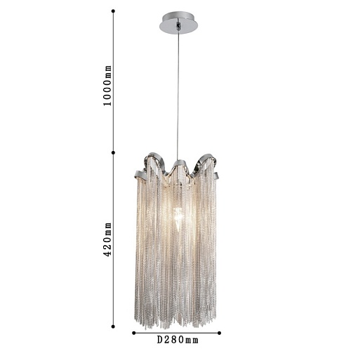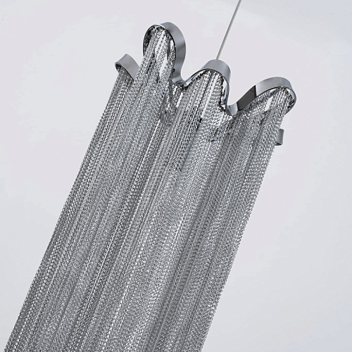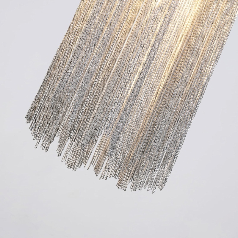 Металлический хромированный каркас, декор из серебристых цепочек, регулируемая высота, сменная лампа, цоколь Е14.