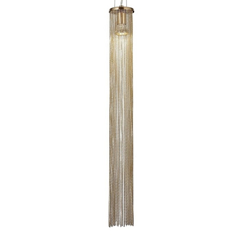 Металлический каркас и цепочки золотого цвета, лампу GU10 можно менять.