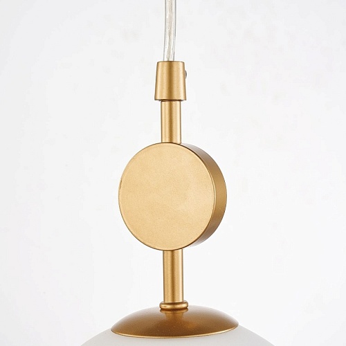 Каркас из металла золотого цвета, плафон из стекла цвета опала, сменные лампы, цоколь Е14.