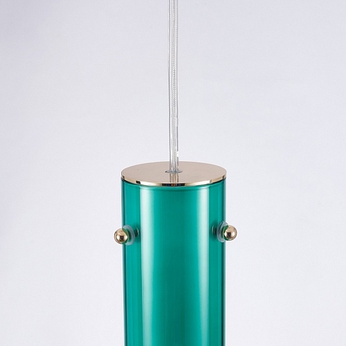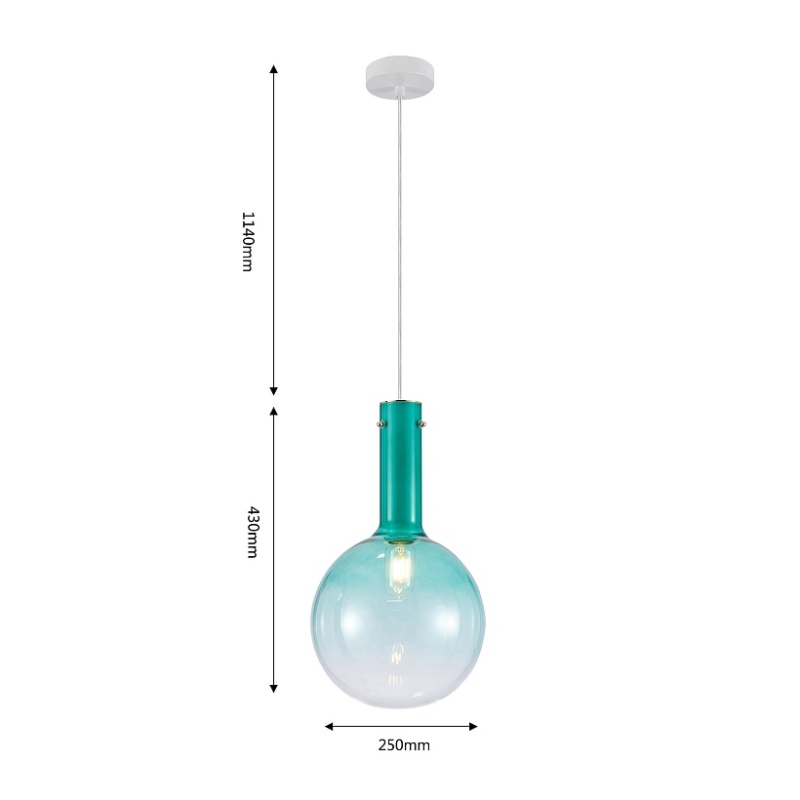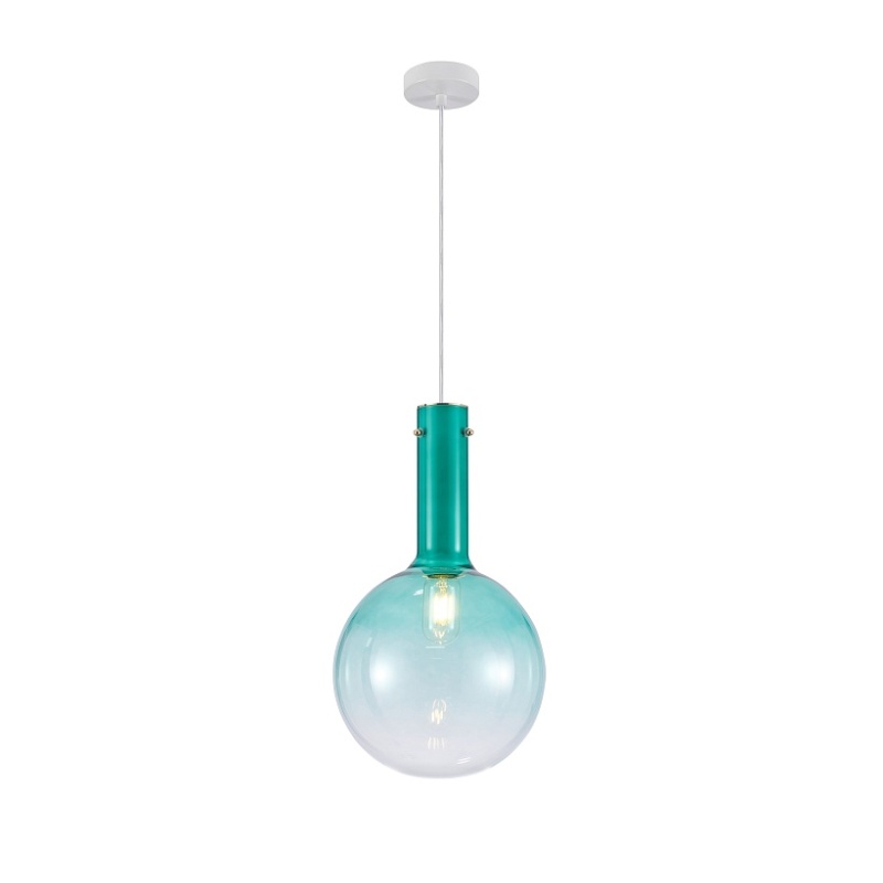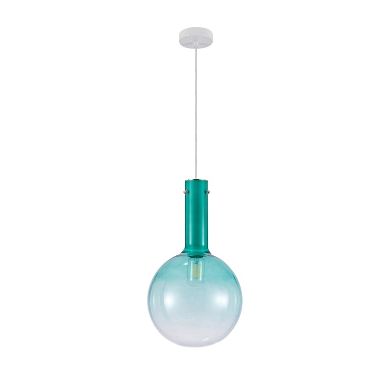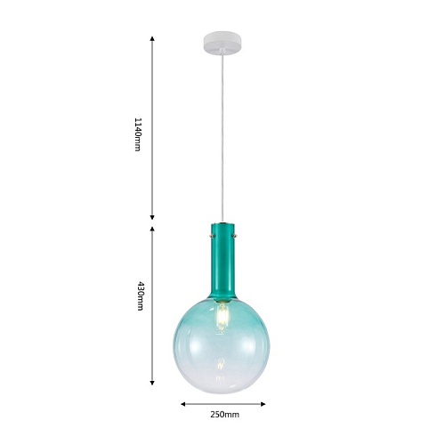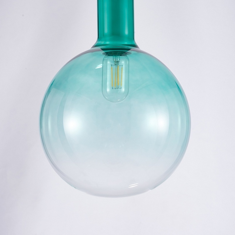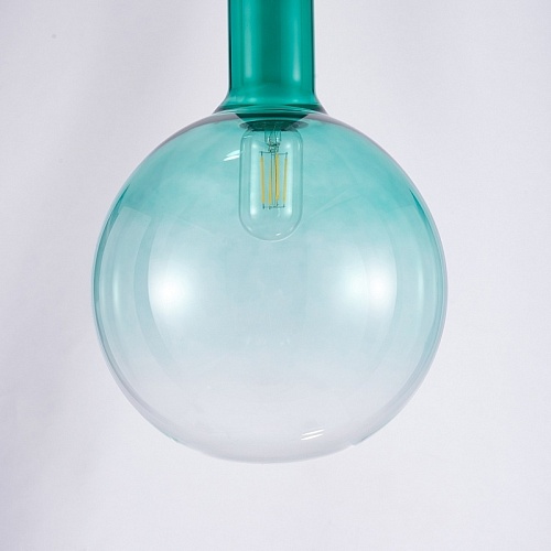 Выдувной плафон из стекла с градиентным нанесением бирюзового цвета. Арматура белого цвета. Лампы можно менять.