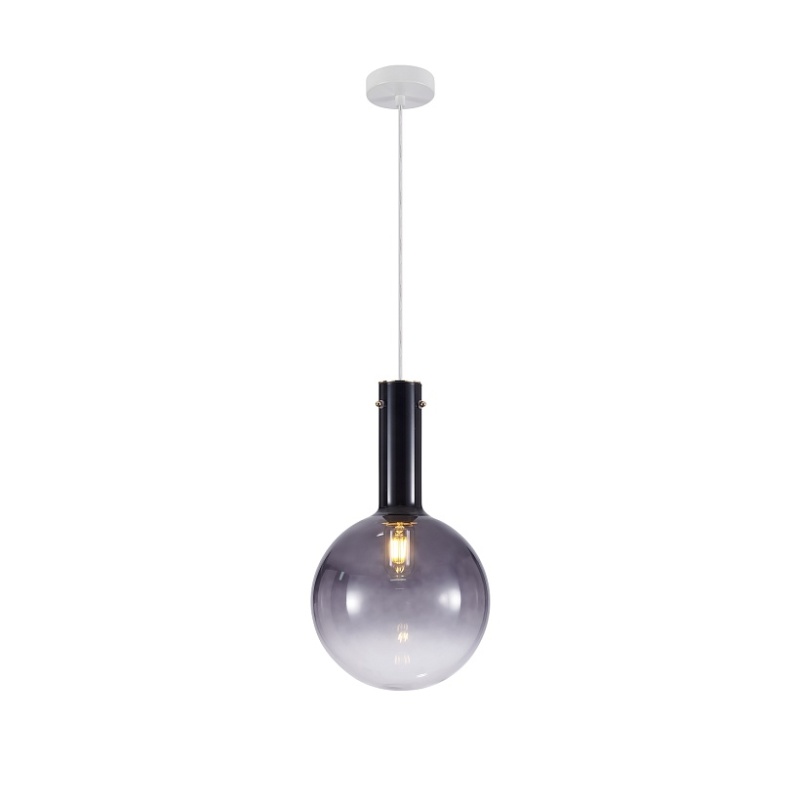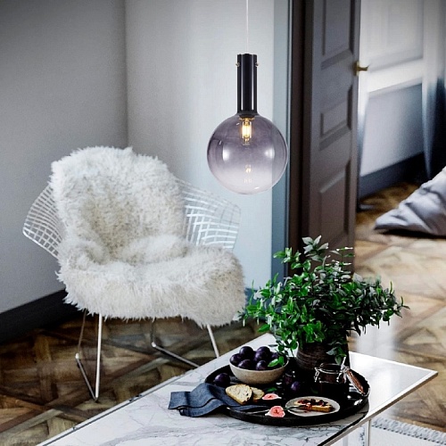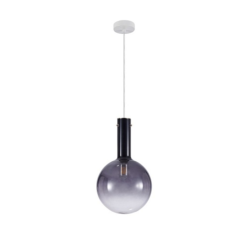 Выдувной плафон из стекла с градиентным нанесением цвета бузины. Арматура белого цвета. Лампы можно менять.