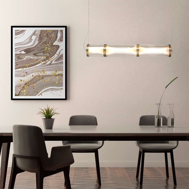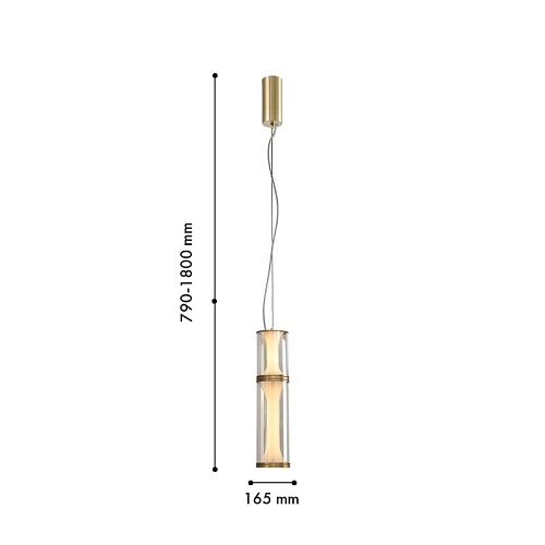Подвес с каркасом в янтарном цвете, плафон из двух стеклянных сегментов в белом цвете, LED-лента, регулируемая высота.