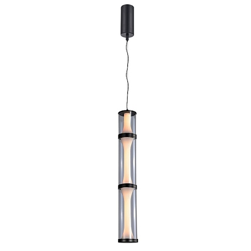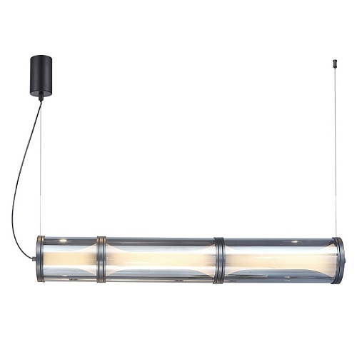 Подвес с каркасом в черном цвете, плафон из трех стеклянных сегментов в белом цвете, LED-лента, в комплекте крепления для монтажа в горизонтальном виде, регулируемая высота.