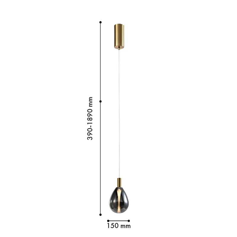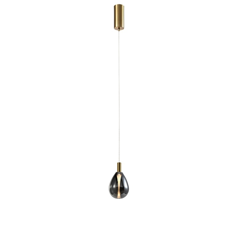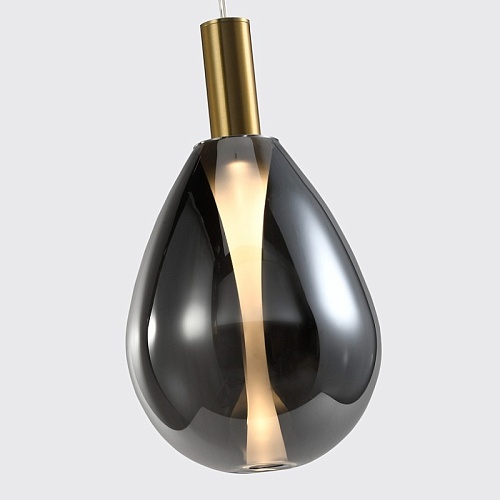 Подвес с каркасом в цвете латунь, с дымчато-серым плафоном, регулируемая высота, COB.