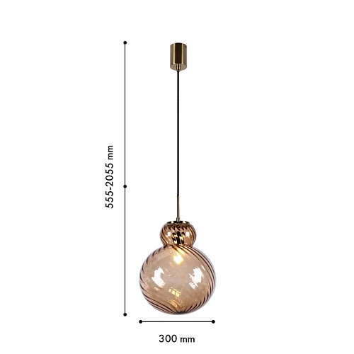 Подвес с плафоном из выдувного коричневого фактурного стекла, каркас в цвете латунь, цоколь Е14, регулируемая высота.