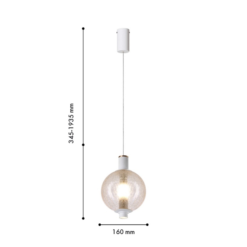 Подвес с выдувным плафоном кракле, два источника света, регулируемая высота, каркас в матовом белом цвете с элементами в цвете латунь.