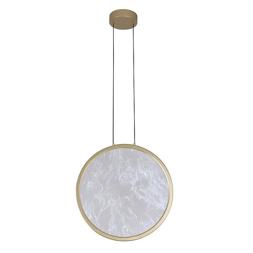 Металлический каркас в цвете матовое золото, плафон из акрила с эффектом дыма, лента LED расположена по внутреннему периметру плафона, регулируемая высота.