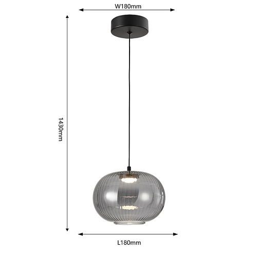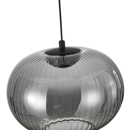 Металлический каркас черного цвета, с выдувным плафоном в виде сферы, в светлом дымчато-сером цвете , LED-модуль, регулируемая высота.