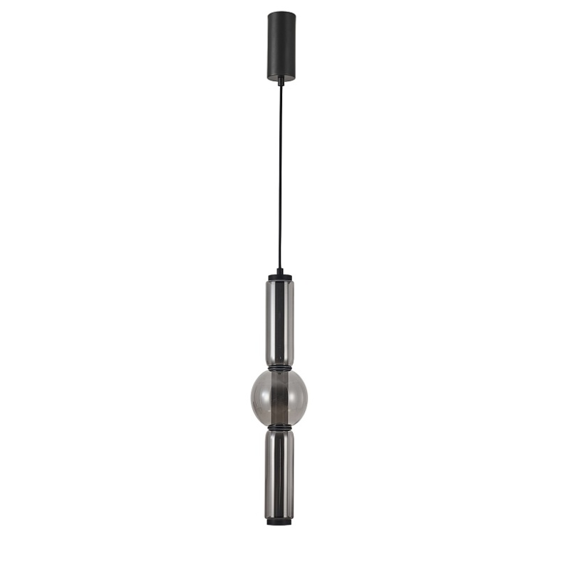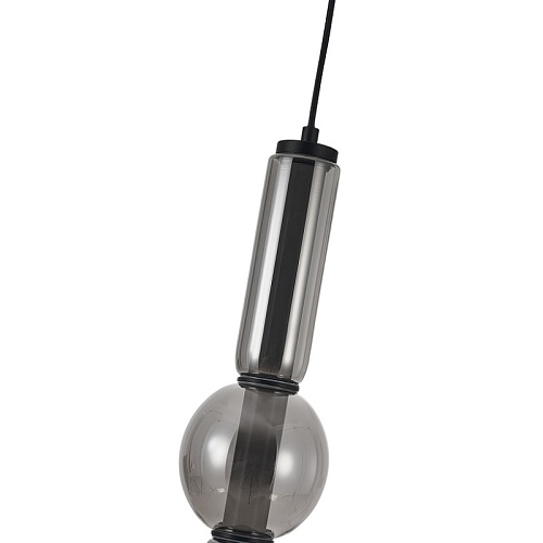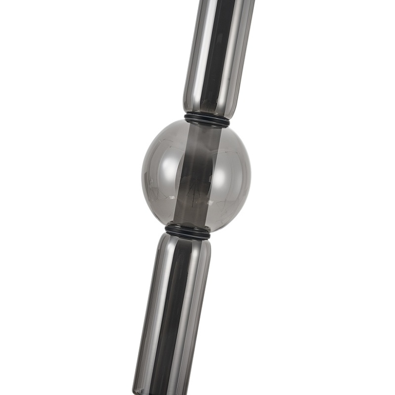 Металлический каркас черного цвета, со светлым дымчато-серым плафоном, изготовлен из выдувного стекла по муранской технологии, встроенная акриловая трубка с LED-лентой, регулируемая высота.