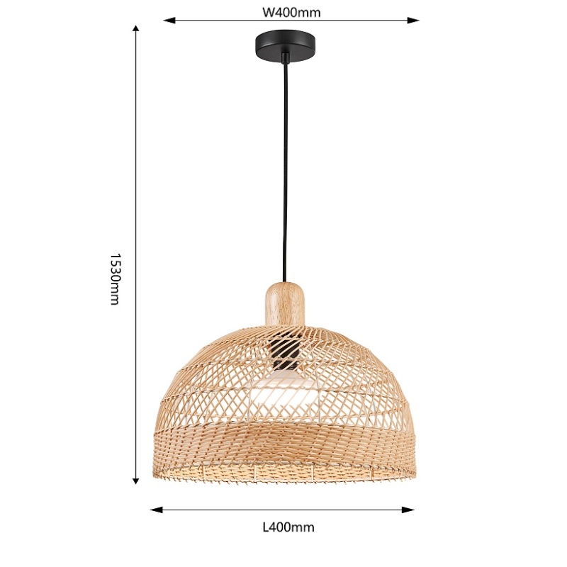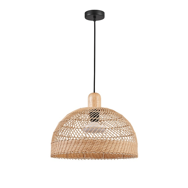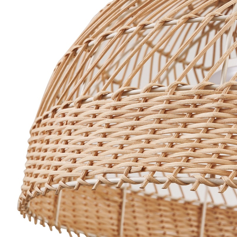 Металлический каркас черного цвета, плетеный абажур из ротанга, диаметр 40 см, выполнен в натуральном бежевом цвете, цоколь Е27.