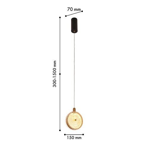 Каркас черного цвета, плафон состоит из двух узорных стеклянных дисков прозрачного и янтарного цвета, внутри которых расположен LED-модуль, регулируемая высота.
