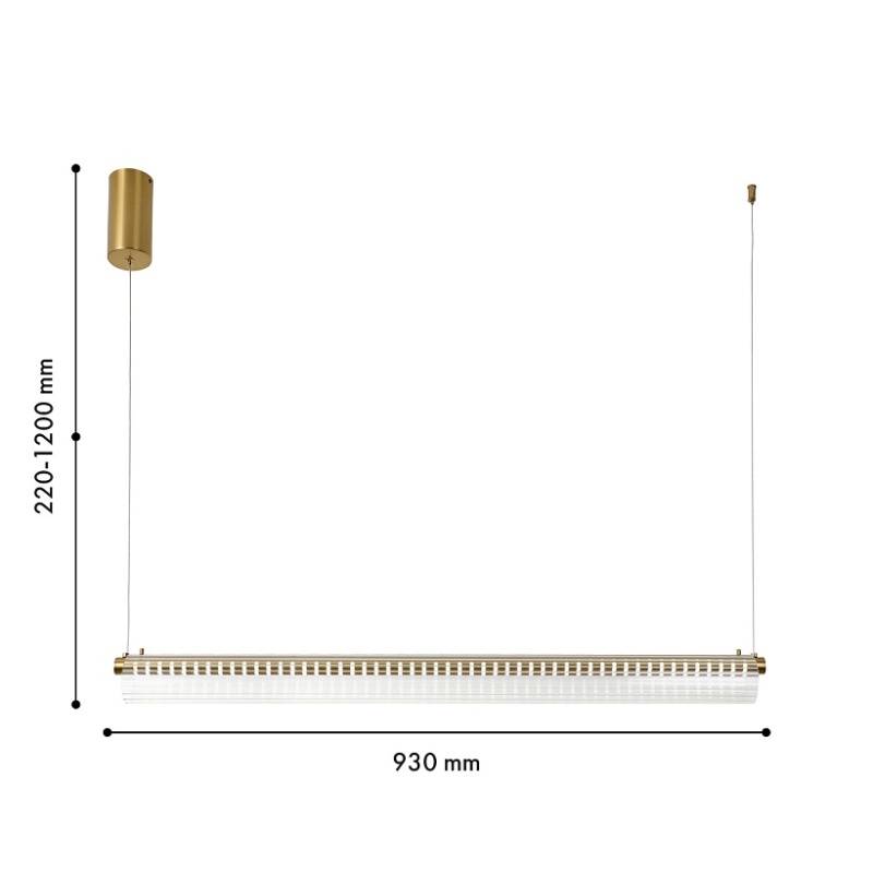 Подвес с металлическим каркасом медного цвета с перфорацией и рифленым плафоном из прозрачного акрила, LED-лента, регулируемая высота.